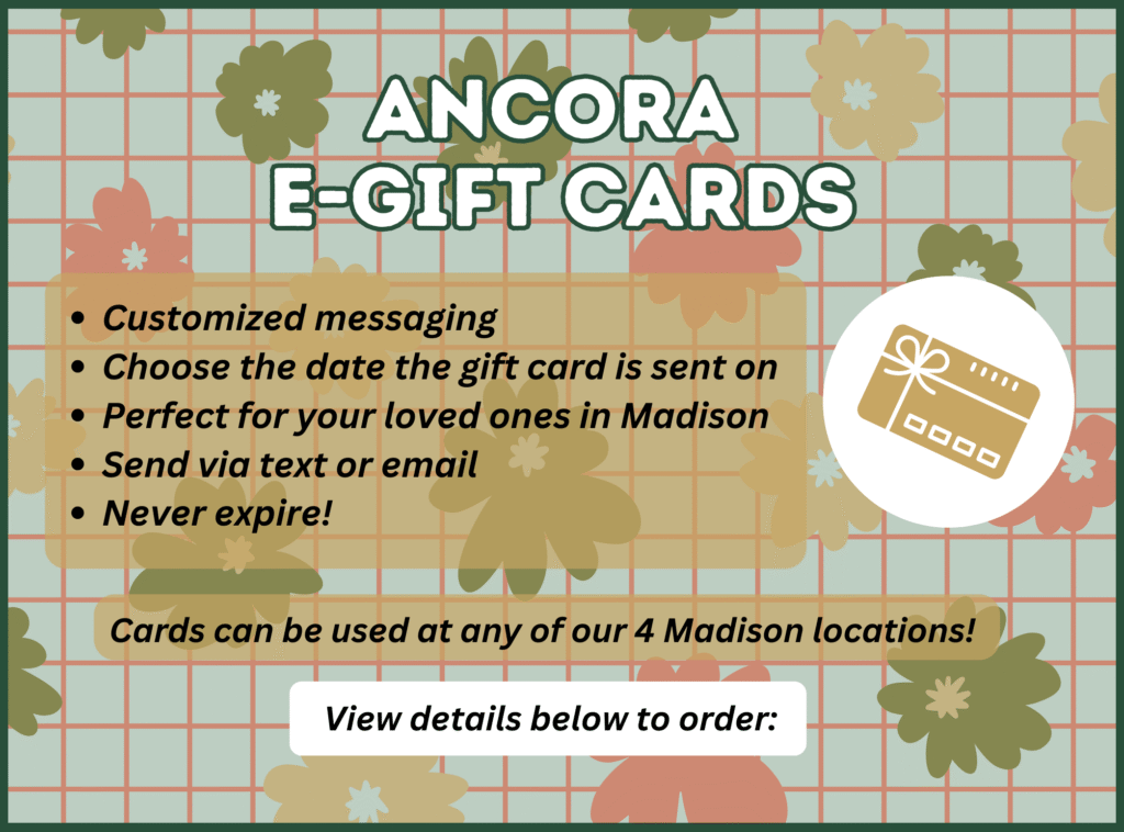 Our online ordering platform allows e-gift cards to be sold from any of our cafes. So choose your favorite below, and shop away!